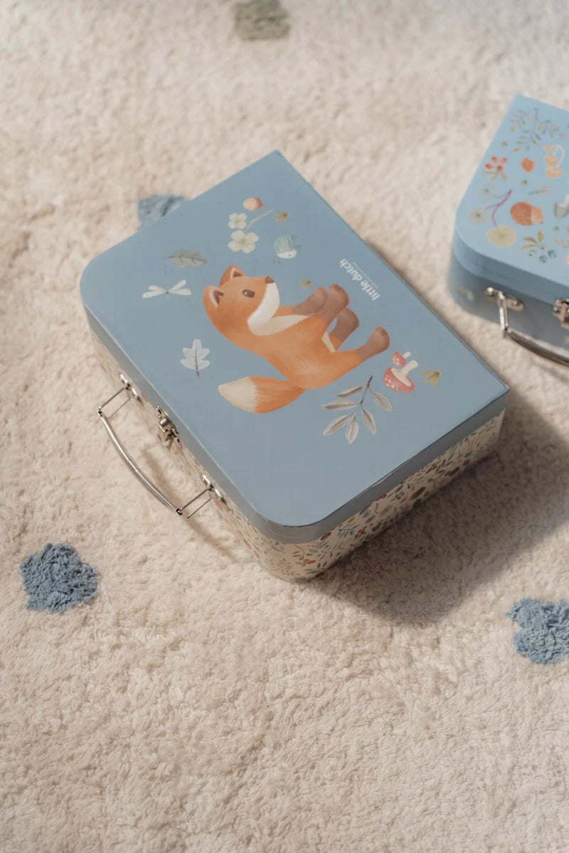 Das Set besteht aus zwei Spielkoffern im Thema Forest Friends mit niedlichen Illustrationen eines Fuchses. Die Innenseite ist mit einem hübschen Aufdruck versehen. Beide Koffer haben einen klassischen Metallgriff und ein Schloss, perfekt für kleine Entdecker. Eignet sich auch perfekt zum Verpacken von Geschenken.